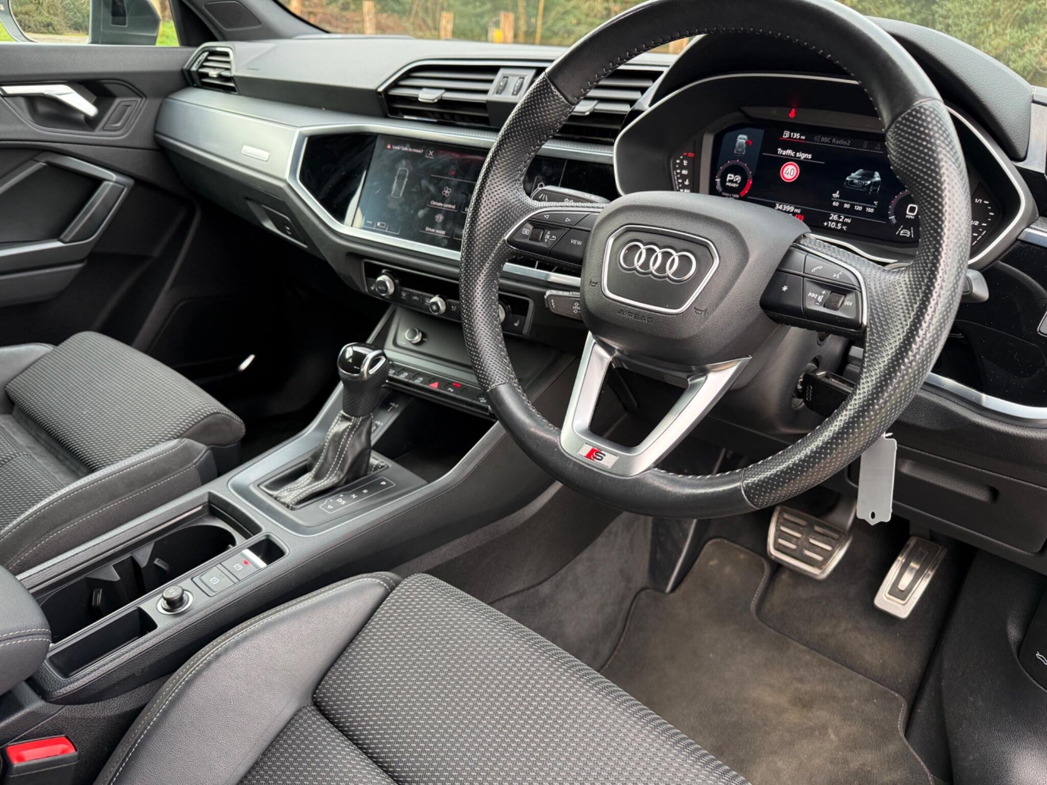 This 2020 Audi Q3 TFSI S line offers exceptional provenance with only one owner and a remarkably low mileage of 34,000 miles for its age, all backed by a clear vehicle history check. This Euro 6 compliant model boasts a powerful 2.0 litre petrol engine paired with Audi's renowned four wheel drive system, ensuring confident performance in all conditions. The S line trim enhances its sporty appeal, while the Comfort and Sound Package, featuring heated seats, and the Extended Ambient Lighting Pack with multi coloured options, create a truly inviting interior.