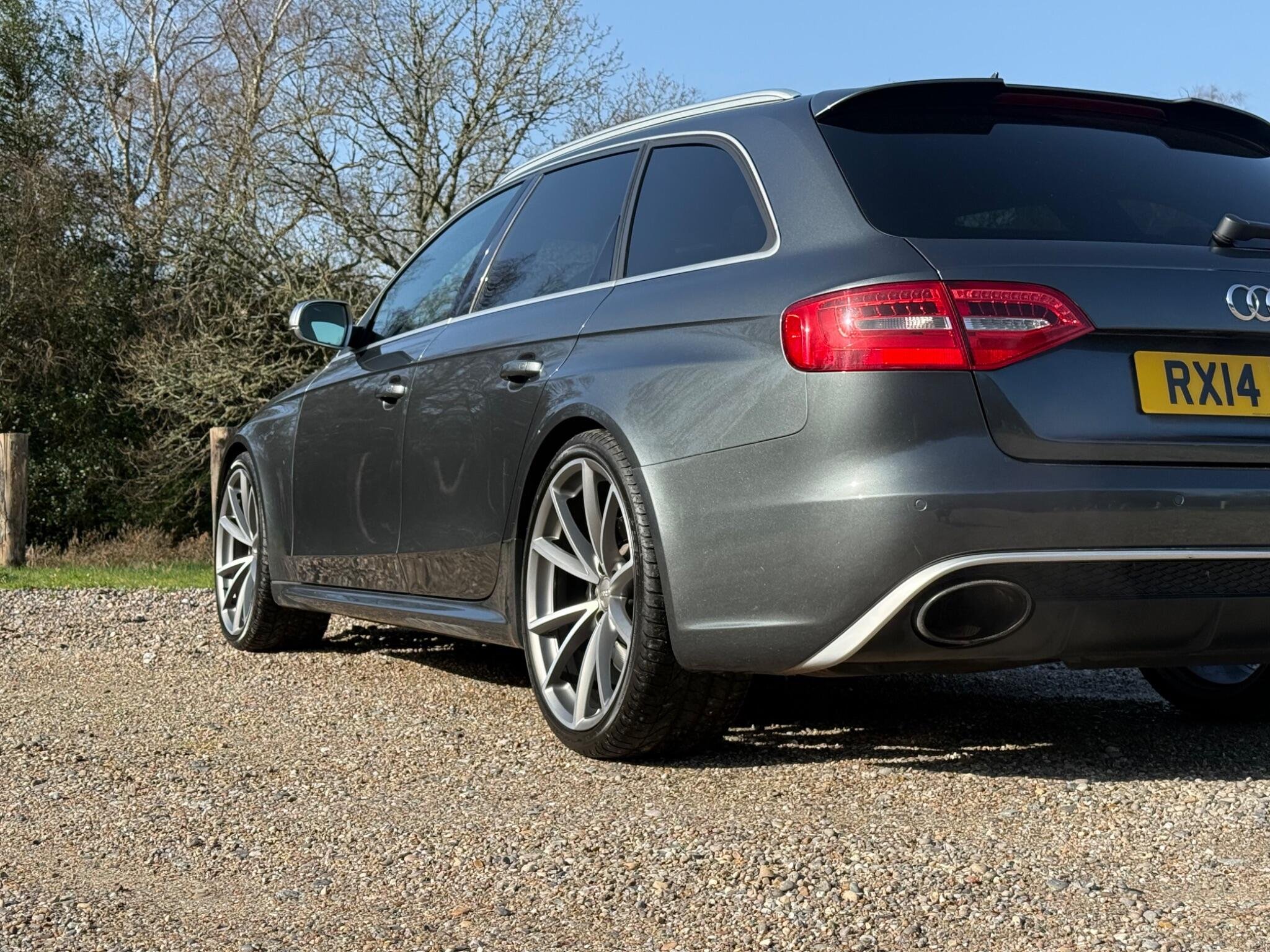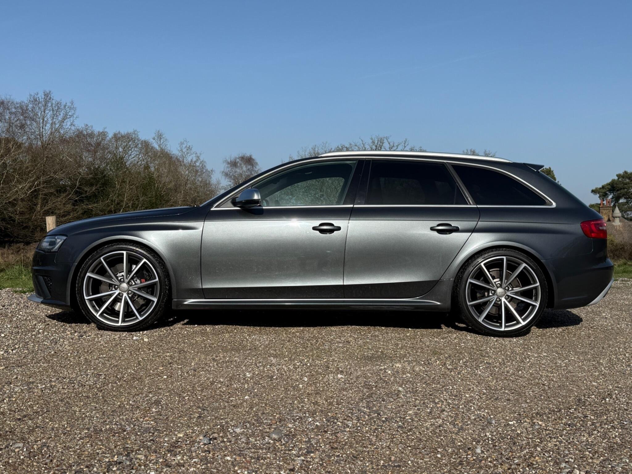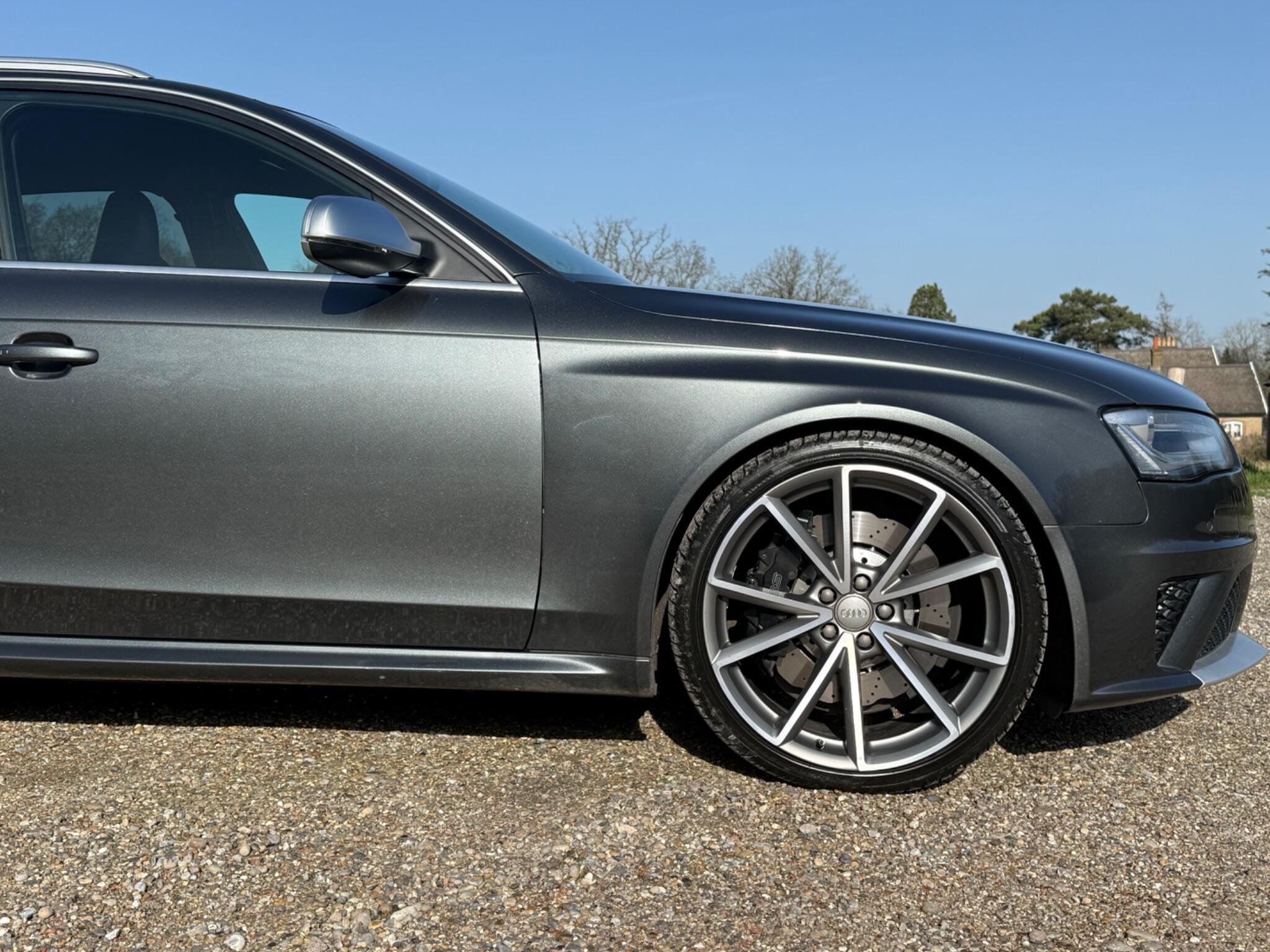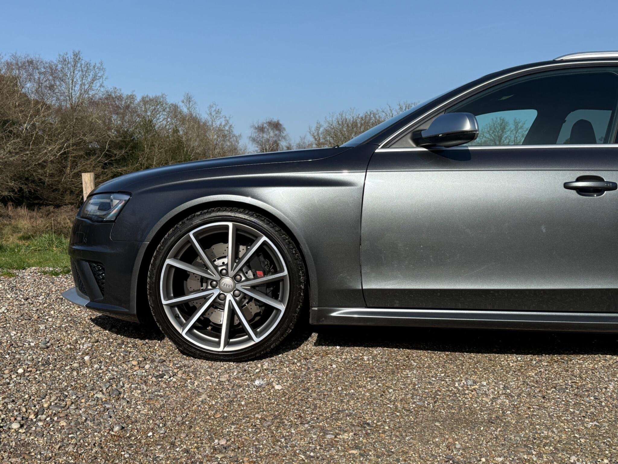 This 2014 Audi RS4 Avant FSI V8 presents a rare find with only one owner from new and a remarkably low mileage of just 63,000 miles, all confirmed by a clear vehicle history check. This powerful 4.2 litre petrol engine, paired with Audi's renowned four wheel drive system, delivers exhilarating performance, achieving 0-62mph in a swift 4.7 seconds. The RS4 Avant is further enhanced with Dynamic Ride Control for a superior driving experience, Bi-Xenon Plus headlights for excellent visibility, and front and rear parking sensors to aid manoeuvrability. Practicality is also considered with the inclusion of a Bluetooth interface for mobile telephone preparation.