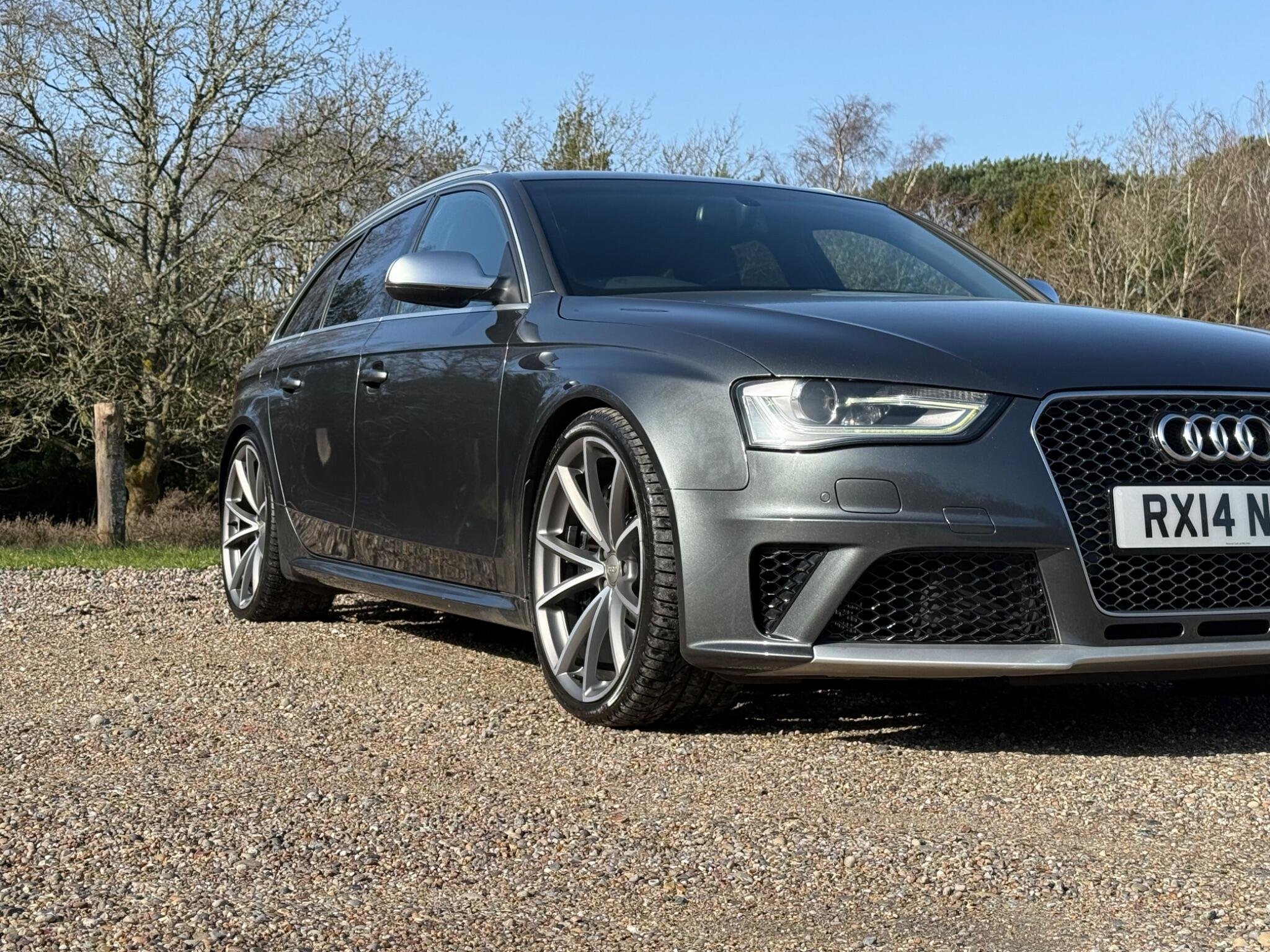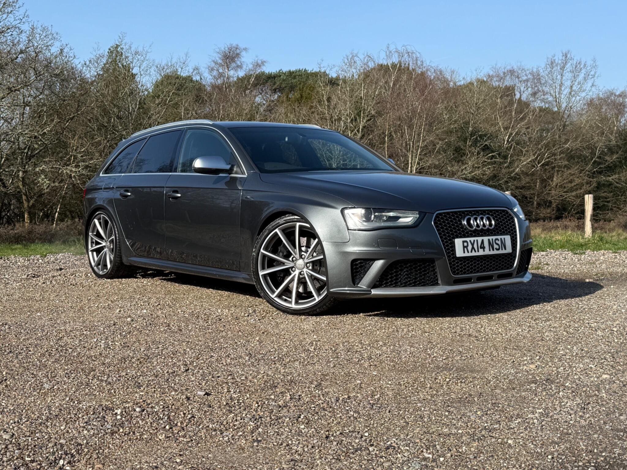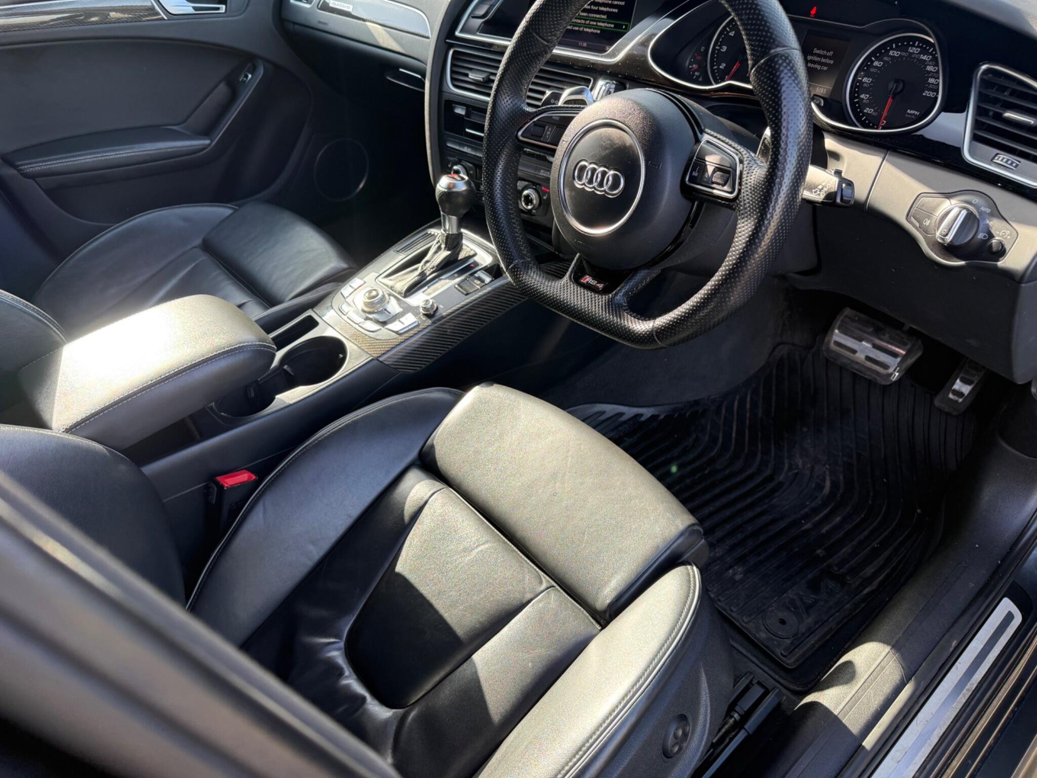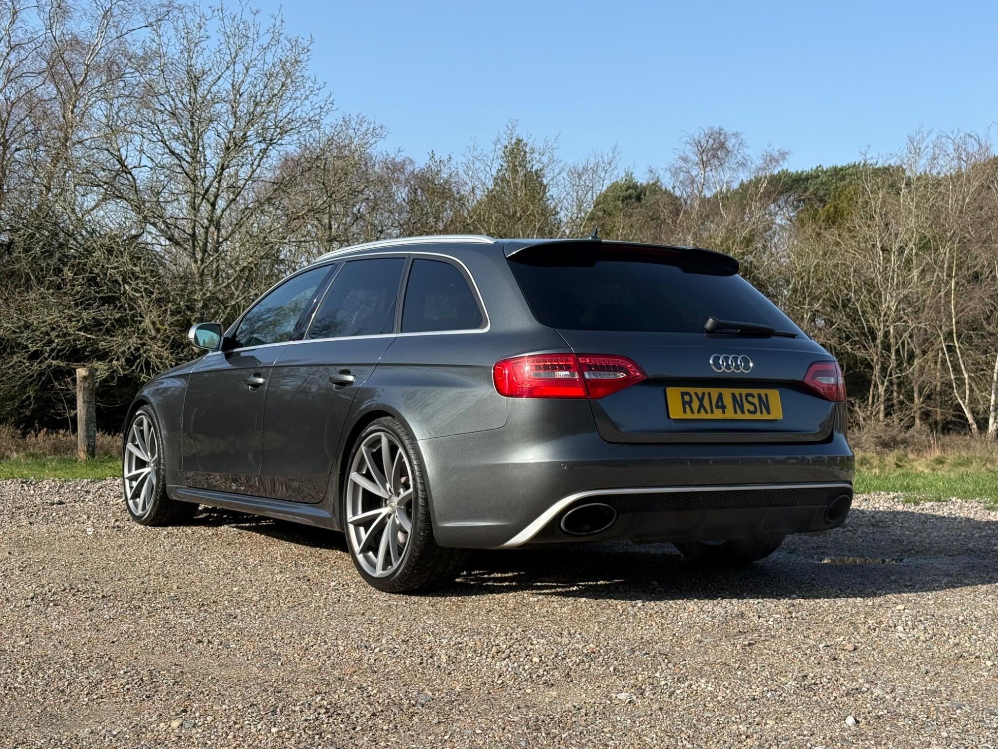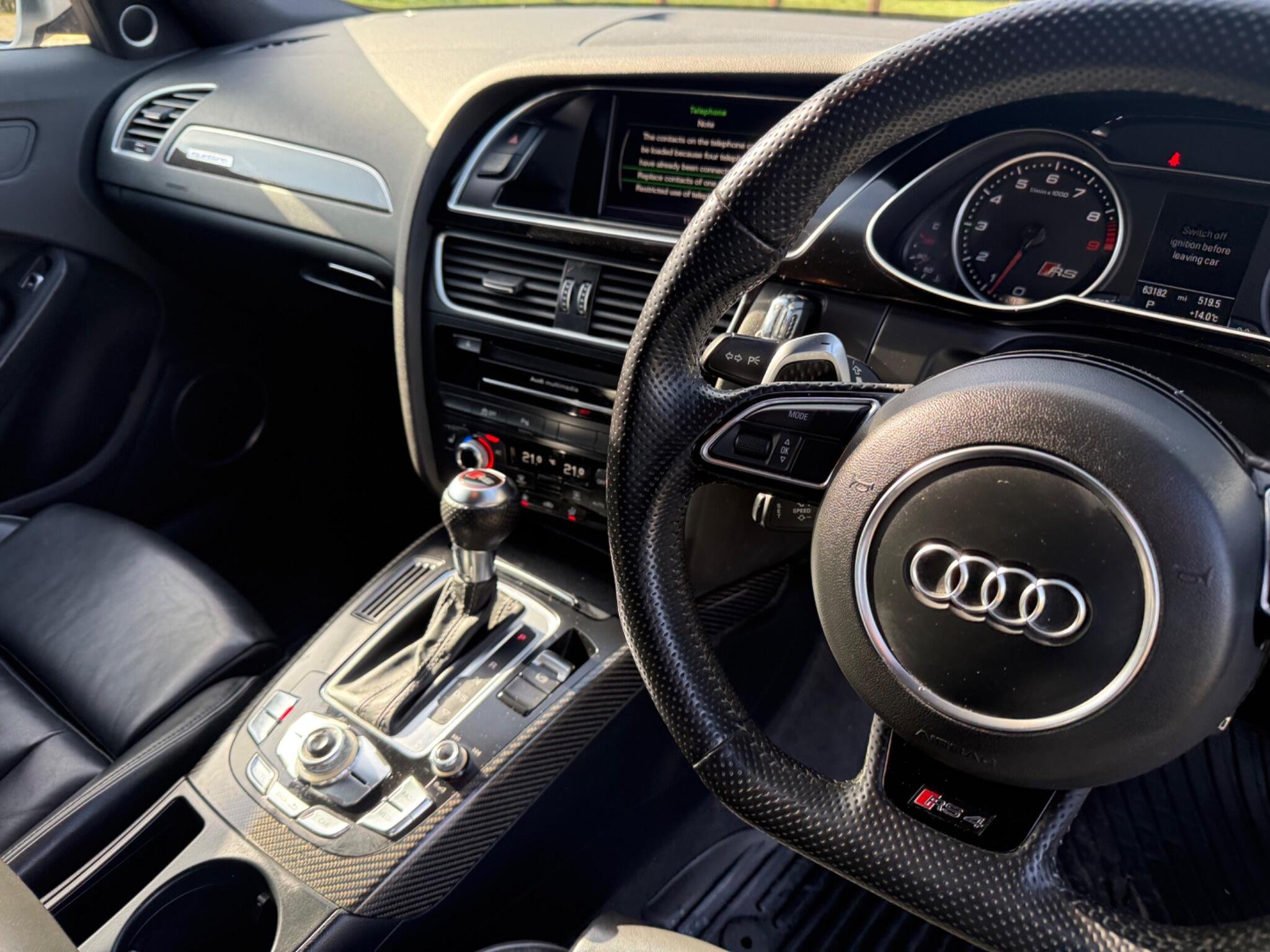 This 2014 Audi RS4 Avant FSI V8 presents a rare find with only one owner from new and a remarkably low mileage of just 63,000 miles, all confirmed by a clear vehicle history check. This powerful 4.2 litre petrol engine, paired with Audi's renowned four wheel drive system, delivers exhilarating performance, achieving 0-62mph in a swift 4.7 seconds. The RS4 Avant is further enhanced with Dynamic Ride Control for a superior driving experience, Bi-Xenon Plus headlights for excellent visibility, and front and rear parking sensors to aid manoeuvrability. Practicality is also considered with the inclusion of a Bluetooth interface for mobile telephone preparation.