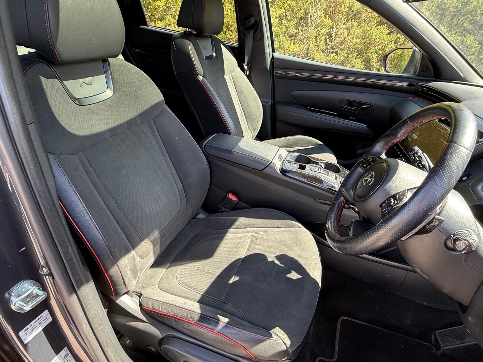 This 2023 Hyundai TUCSON h T-GDi N Line S is a clear vehicle history check example, offering peace of mind alongside its impressive features. This Euro 6 compliant model boasts a 1.6L Petrol Hybrid Engine and comes in the N Line S trim. Inside, you'll find a wealth of technology and comfort, including Bluetooth Connectivity, Apple CarPlay for seamless phone integration, and Heated Front Seats for those colder journeys. The electric tilt and slide Panoramic Sunroof brings an open and airy feel to the cabin, while the Blind Spot Collision Avoidance Assist adds an extra layer of safety.