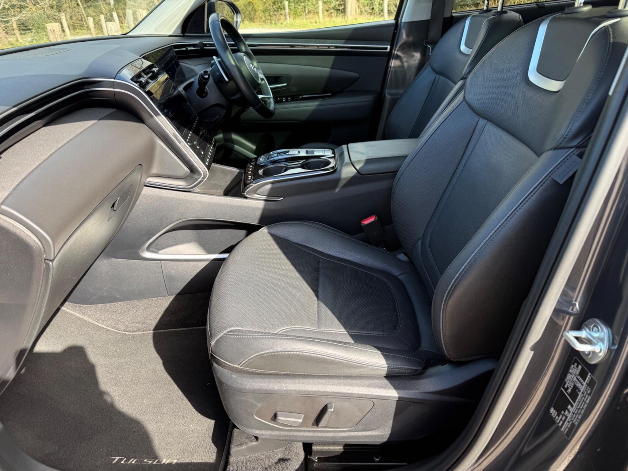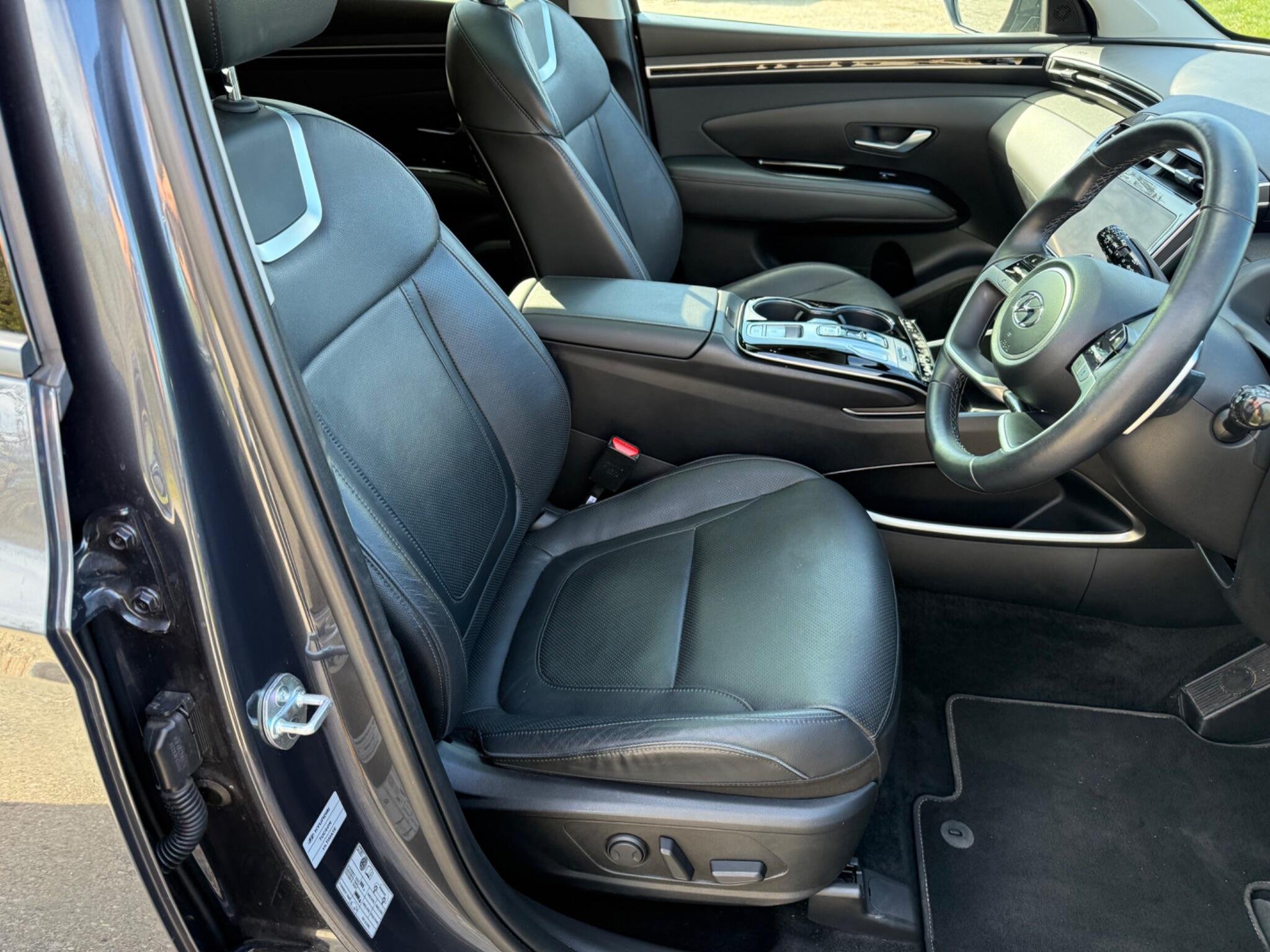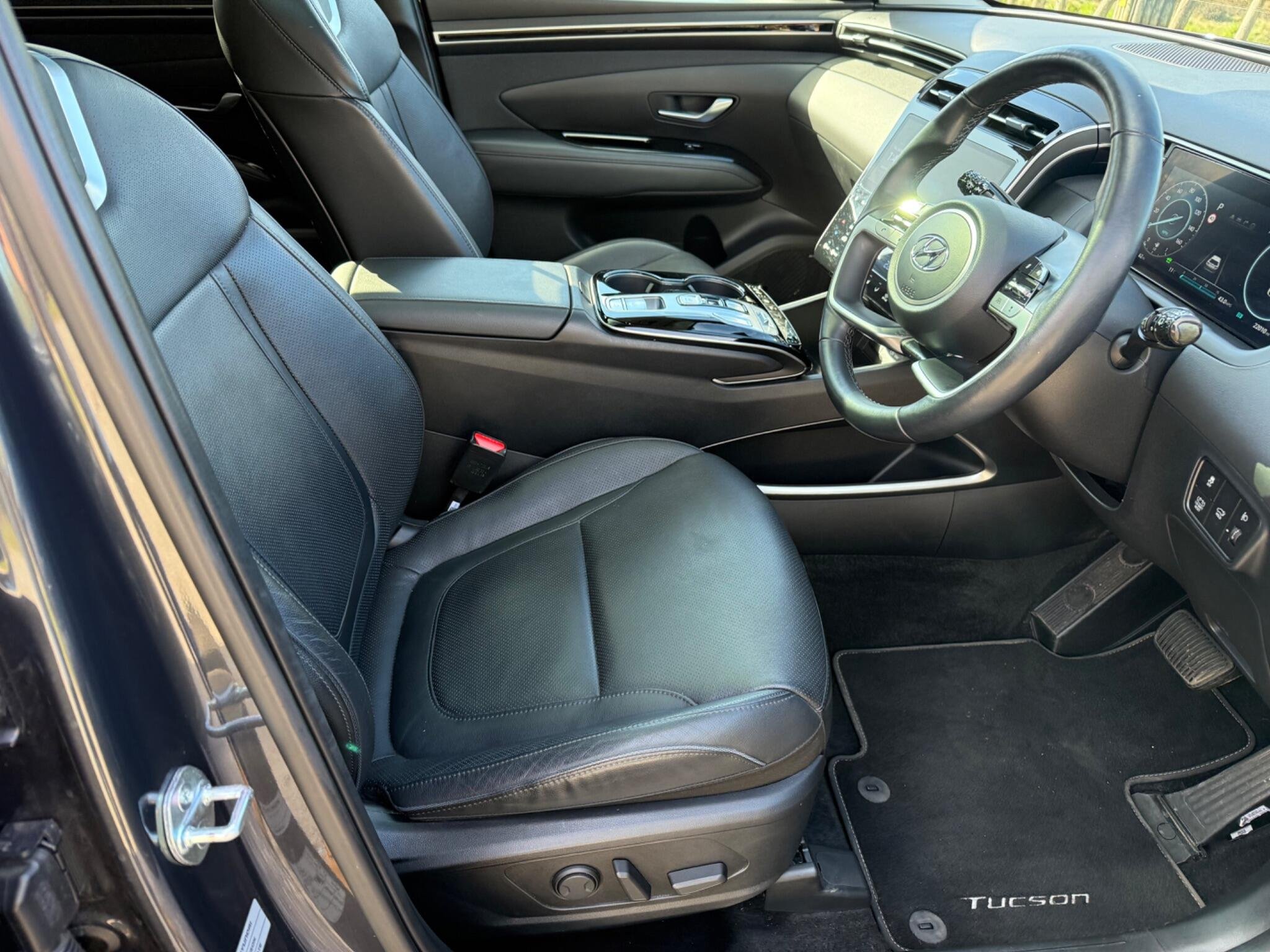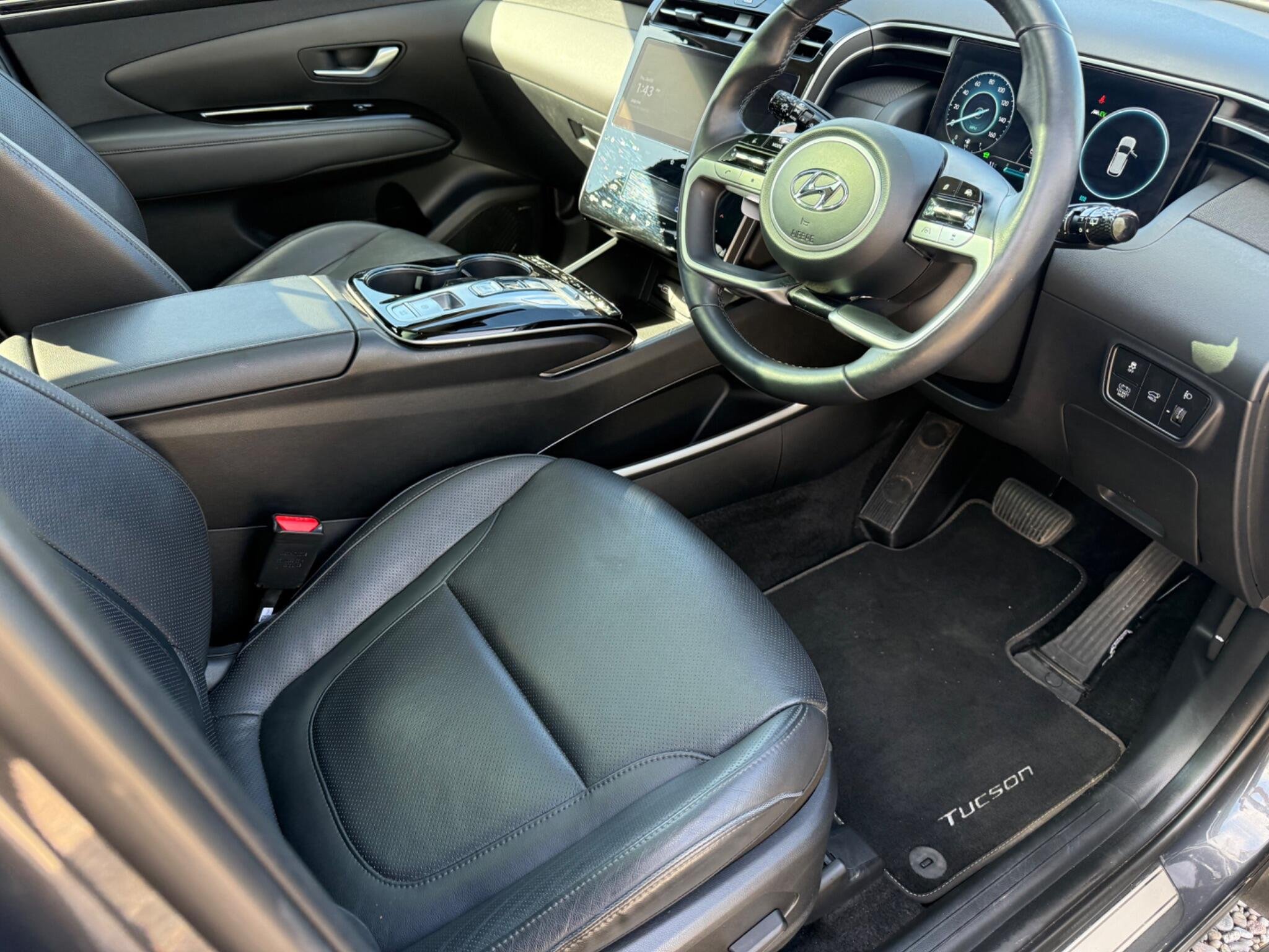 This 2023 Hyundai TUCSON h T-GDi Ultimate is a superb example, having had only one owner since new. This stylish SUV boasts a 1.6 litre petrol hybrid engine, meeting Euro 6 emissions standards. The Ultimate trim level ensures a premium experience, with features like heated rear outer seats, Android Auto for seamless phone connectivity, and a three zone climate control system to keep everyone comfortable. Driving is made easier with automatic headlights that activate with a dusk sensor, and the expansive glass panoramic sunroof offers an electric tilt and slide function, flooding the cabin with light.