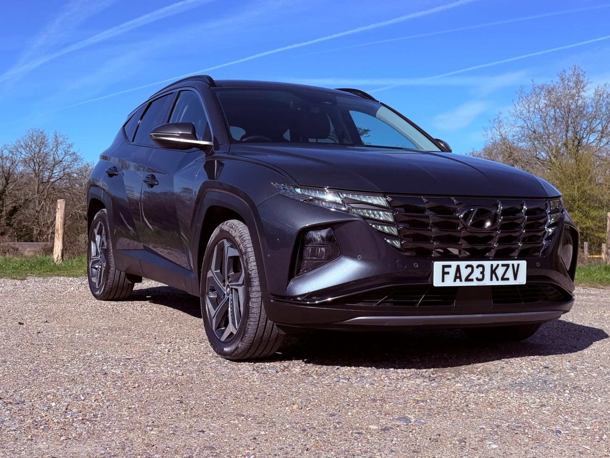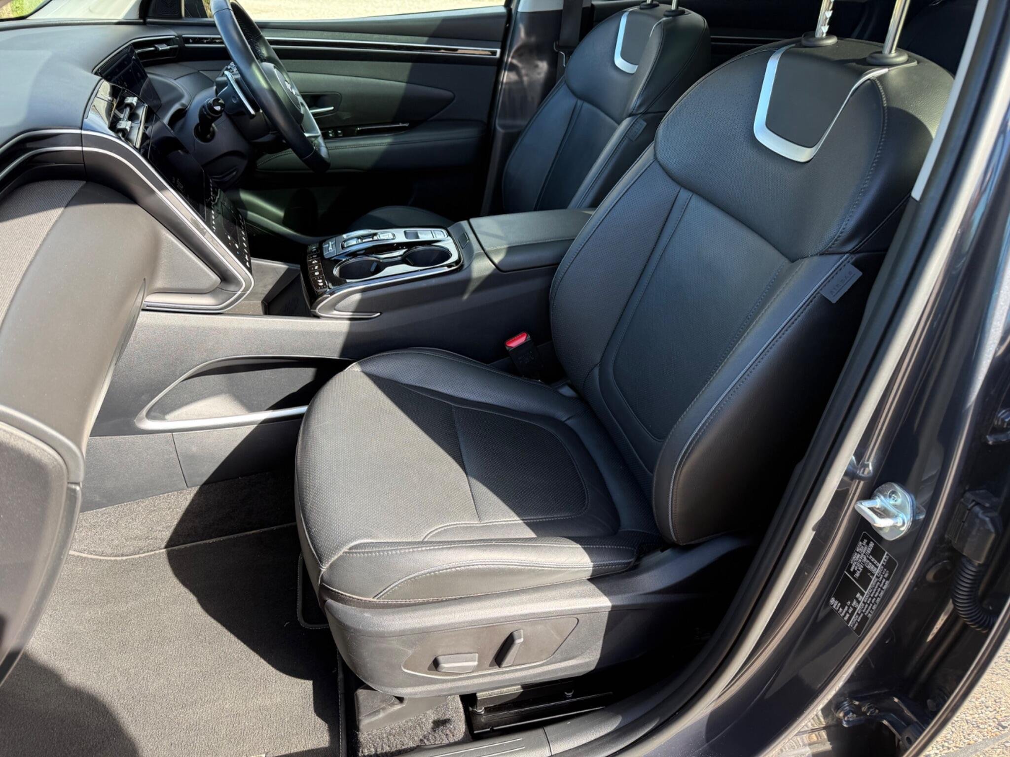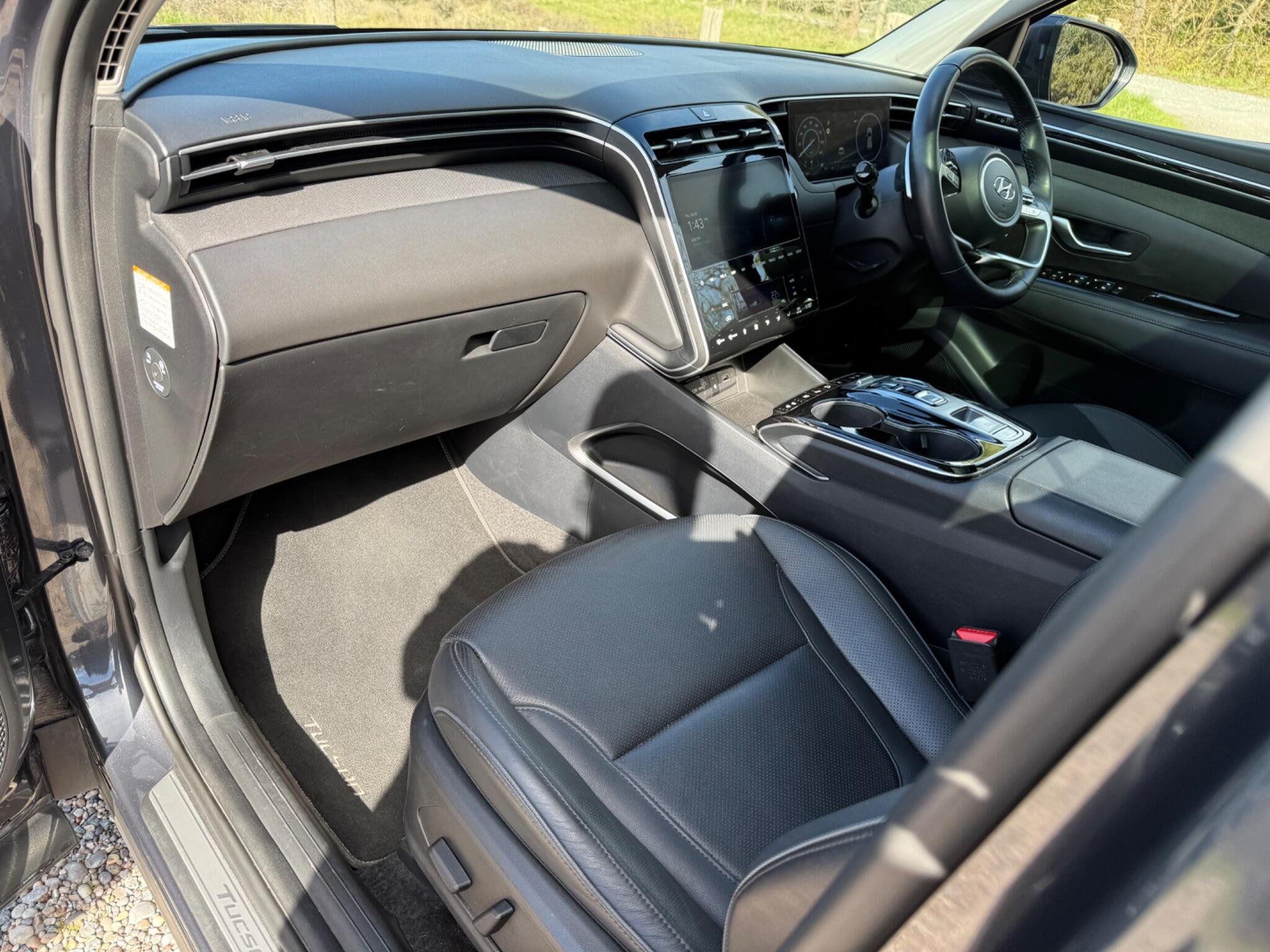 This 2023 Hyundai TUCSON h T-GDi Ultimate is a superb example, having had only one owner since new. This stylish SUV boasts a 1.6 litre petrol hybrid engine, meeting Euro 6 emissions standards. The Ultimate trim level ensures a premium experience, with features like heated rear outer seats, Android Auto for seamless phone connectivity, and a three zone climate control system to keep everyone comfortable. Driving is made easier with automatic headlights that activate with a dusk sensor, and the expansive glass panoramic sunroof offers an electric tilt and slide function, flooding the cabin with light.