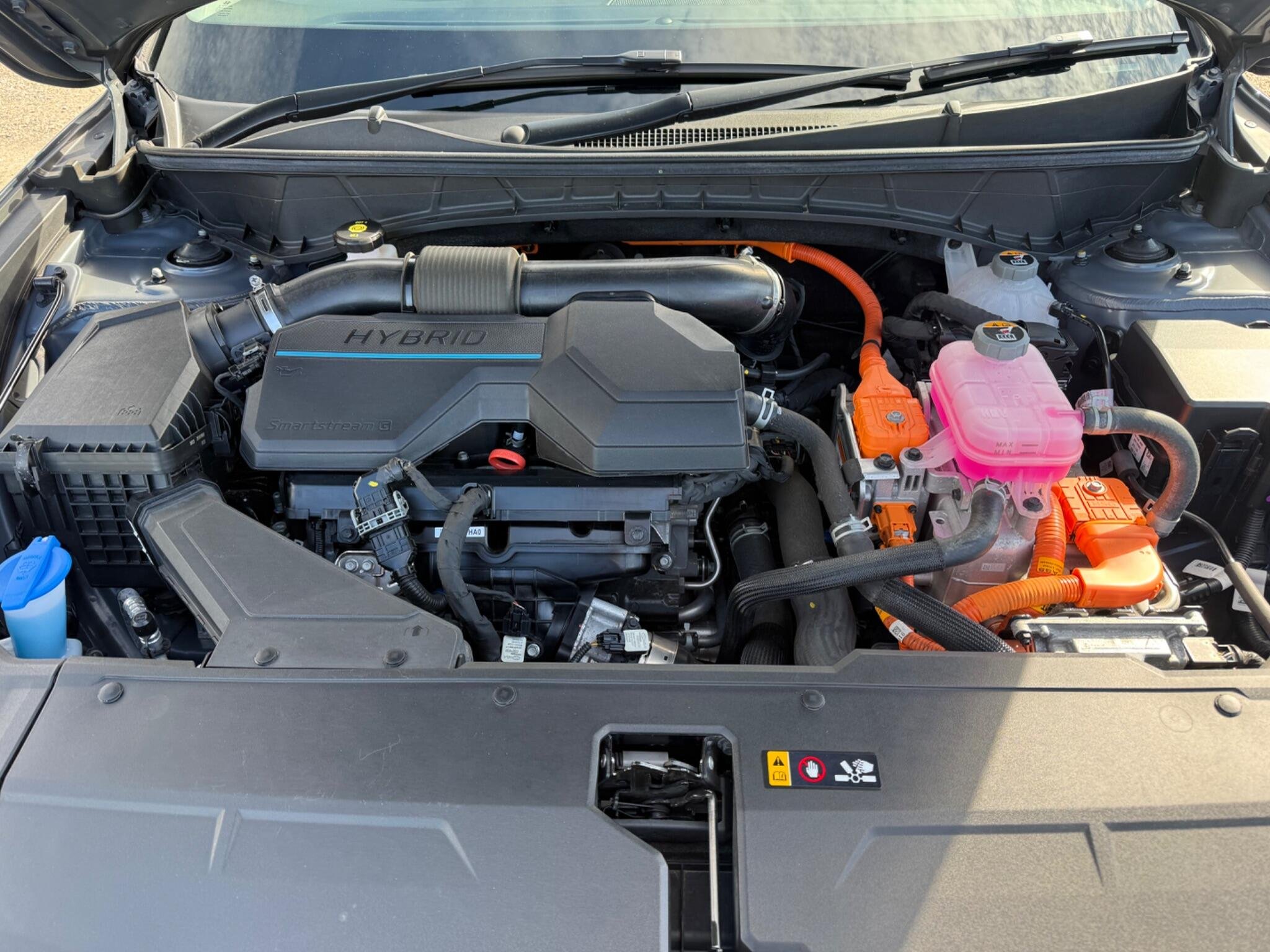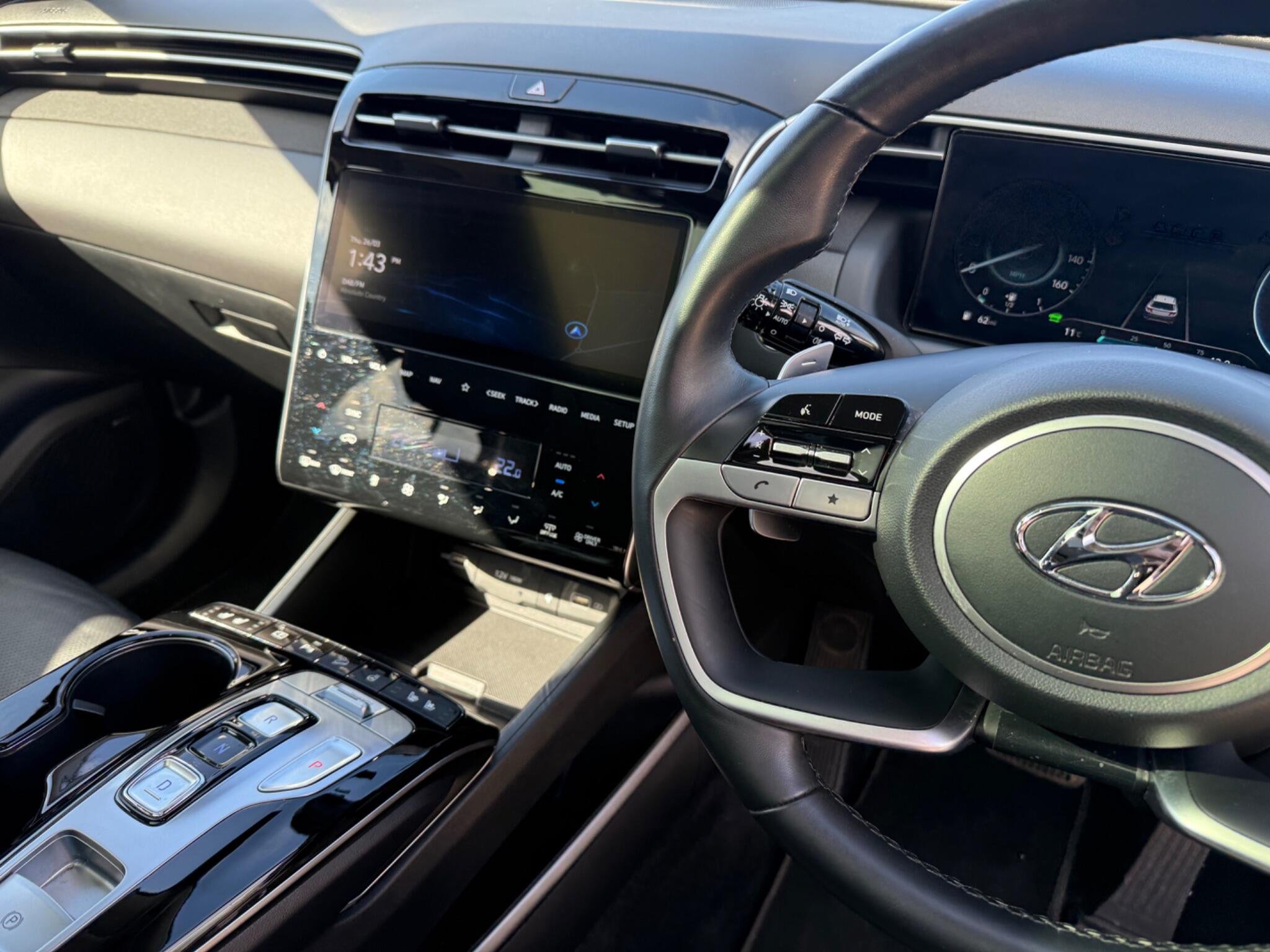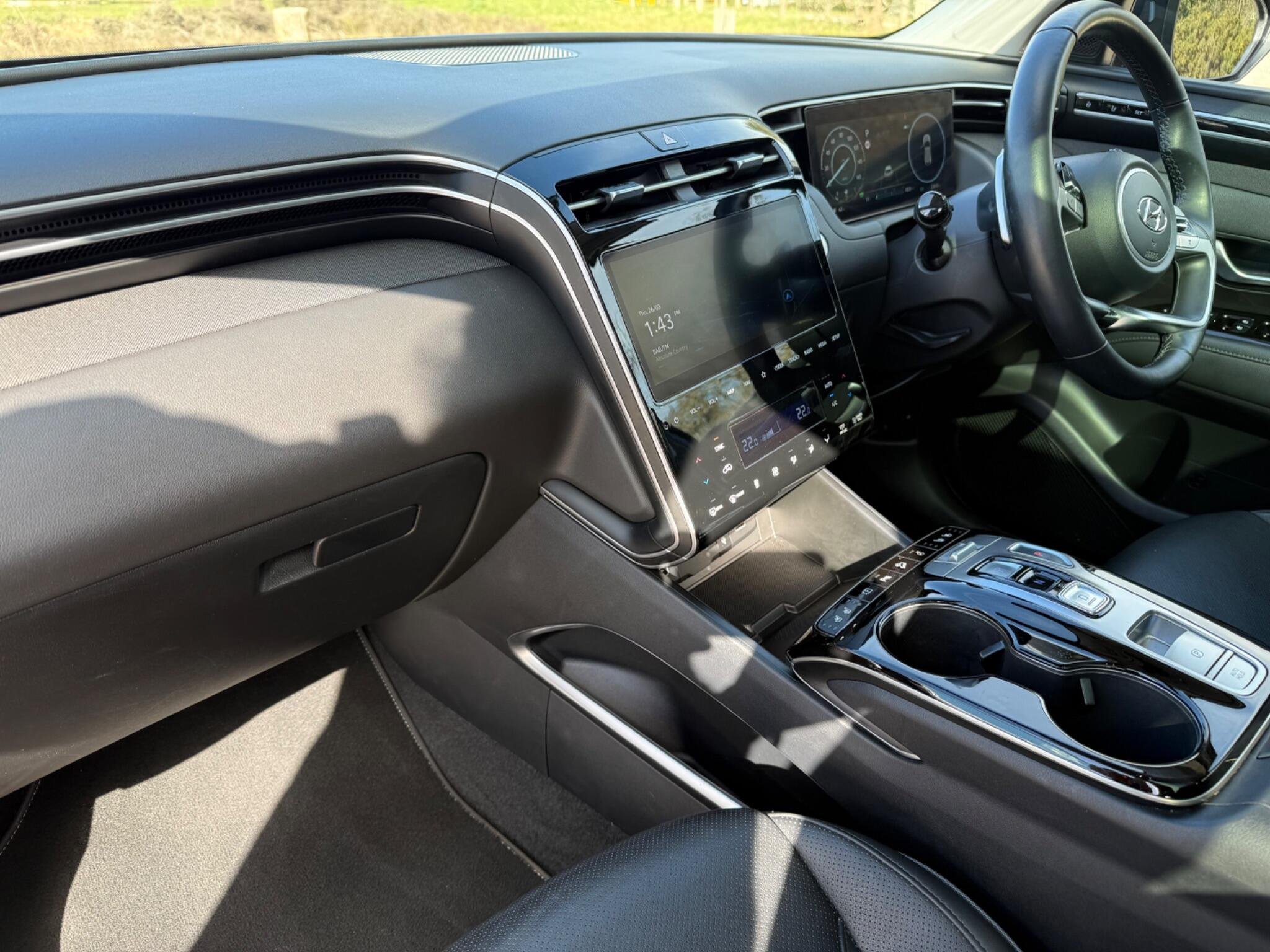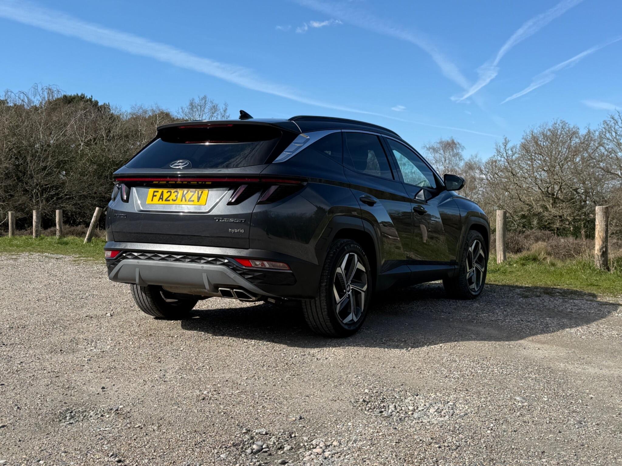 This 2023 Hyundai TUCSON h T-GDi Ultimate is a superb example, having had only one owner since new. This stylish SUV boasts a 1.6 litre petrol hybrid engine, meeting Euro 6 emissions standards. The Ultimate trim level ensures a premium experience, with features like heated rear outer seats, Android Auto for seamless phone connectivity, and a three zone climate control system to keep everyone comfortable. Driving is made easier with automatic headlights that activate with a dusk sensor, and the expansive glass panoramic sunroof offers an electric tilt and slide function, flooding the cabin with light.